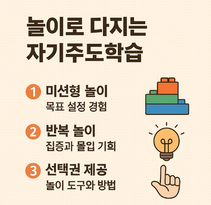 📝 자기주도학습은 초등 이후의 ‘공부 습관’이 아니라, 유아기 ‘놀이 습관’에서 시작됩니다. 자기결정감과 몰입력, 목표의식을 키우는 실천 팁을 정리했습니다.